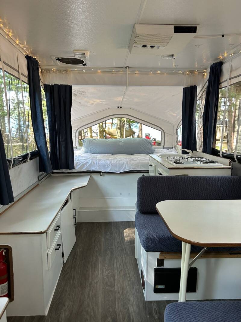 We are thrilled to offer our guests a little escape from the main cabin with the Natynski Nomad! Updated in 2023, it is perfect for a nap, reading, working (if you must), playing games, etc. It's even has Wi-Fi! If you want electricity (it has air!) you can run an extension cord from the cabin.